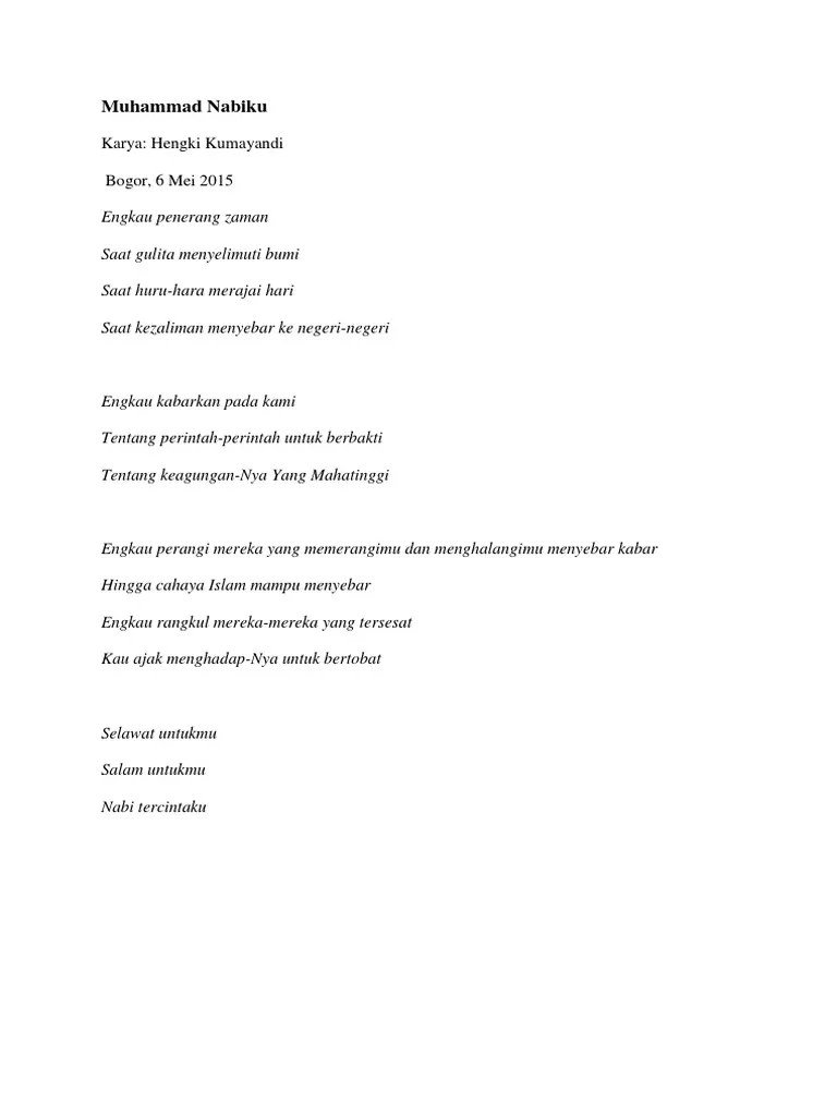 Silakan bagikan puisi ini jika bermanfaat. Rasulullah muhammad teladanku, siapa teladanmu? Wily's fams 10 months ago. Dec 12 2016 kumpulan puisi tentang maulid nabi muhammad puisi. Bercerita tentang nabi muhammad shallallahu alaihi wasallam tentu akan.