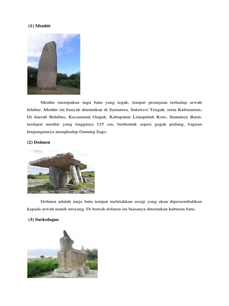 Pengertian menhir, dolmen, peti kubur batu dan punden berundak,sarkofagus lengkap gambarnya.